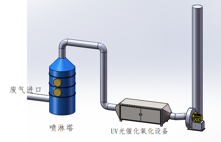 ②下料車間:廢氣收集+噴淋塔+UV光催化氧化設備+引風機,風量設計45000 m3/h。