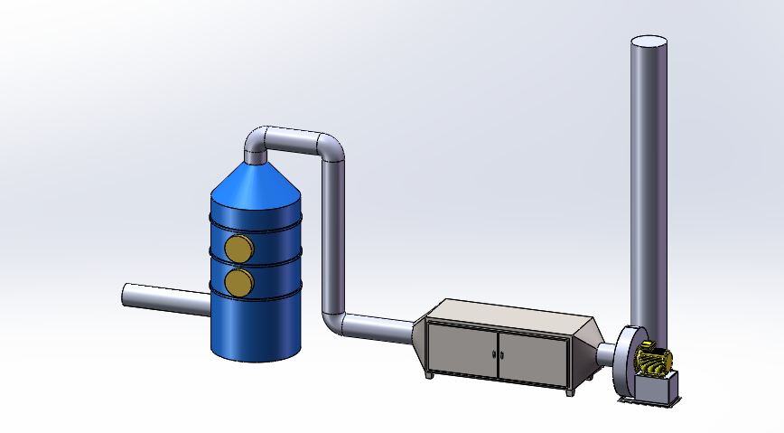 處理工藝:廢氣收集+噴淋塔+UV光催化氧化設備+引風機(噴淋塔除煙,UV光催化氧化設備除味),風量設計25000m3/h。