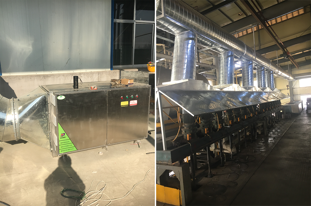 處理工藝:廢氣收集+UV光催化氧化設備+引風機,每條烘干線風量設計為5000m3/h。